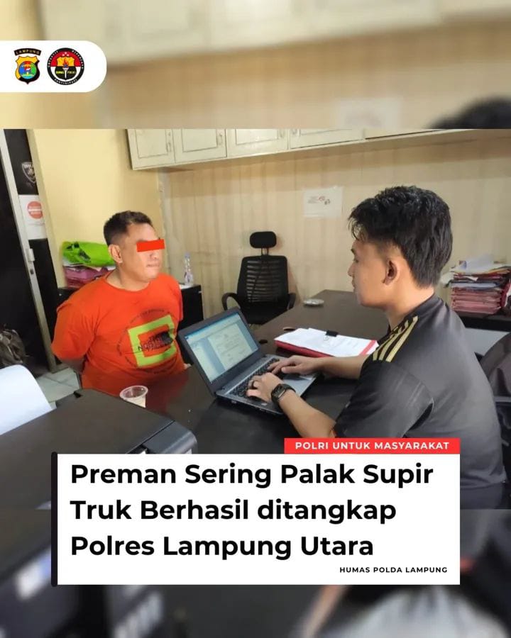 Seorang preman yang sering melakukan pemalakan terhadap sopit mobil truk di tangkap oleh Sat Reskrim Polres Lampung Utara.